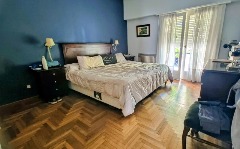 Respecto a los baños, la propiedad está equipada para la comodidad simultanea de una familia amplia: baño completo en el dormitorio principal, un segundo baño compartimentado frente a los dormitorios adicionales, un tercer baño de recepción en semi suite al frente y un toilette auxiliar con acceso desde el parque.